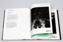 The overall theme led us to Chromolux paper with an uncoated back and a glossy front. A Japanese cover enabled us to literally translate the idea of »the back of things«, which are simply invisible to the viewer. On the inside we risoprinted pictures of the diploma process and a portrait, either in violet or green, depending on the course of study. And on the outside a simple black and white picture of the »shining« result with its description.