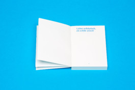With its formal appearance, »Poetry of Protest« appears like a volume of poetry, but statements from protest and demonstration posters were used as content. It represents a contrast between form and content. The focus here is on the language of demonstrations, as opposed to the design of a poetry book. Mainly the demonstration topics, tuition fees, data backup, nuclear power, right-wing extremism, Stuttgart 21, homosexuality and cruelty to animals were used. A collection of 90 different demonstration statements.