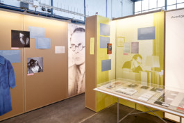 Arno Schmidt was a writer who lived in Darmstadt from 1955-1958. A team of students from the Department of Design at the University of Applied Sciences Darmstadt and students from the Technical University Darmstadt from the fields of architecture and literature, worked for two years on an exhibition about the work of Arno Schmidt and his life in Darmstadt. This interdisciplinary project included a parqure through Darmstadt, window exhibitions in different stores and a cultural program. The tasks were distributed among all the students and my main task was to curate the exhibition, work on the exhibition design and the catalog design.